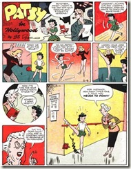 According to Ger’s intro, “Patsy in Hollywood” ran under varying titles in the forties and early fifties, and was helmed by a succession of artists from the Milt Caniff stable. The jokes in these strips may be very pedestrian…