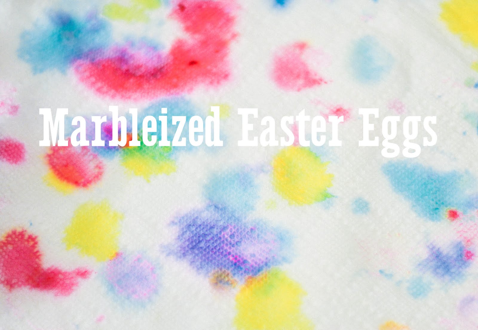 2) Prepare bowls of warm water for your base colours (make sure the water is deep enough to cover the egg), and use shallow dishes, (we used 9 inch pie plates) with water half an inch deep, for your marbleizing colours. In each bowl/dish add about 2 tbsp of vinegar. This will help the colour stick your eggs!