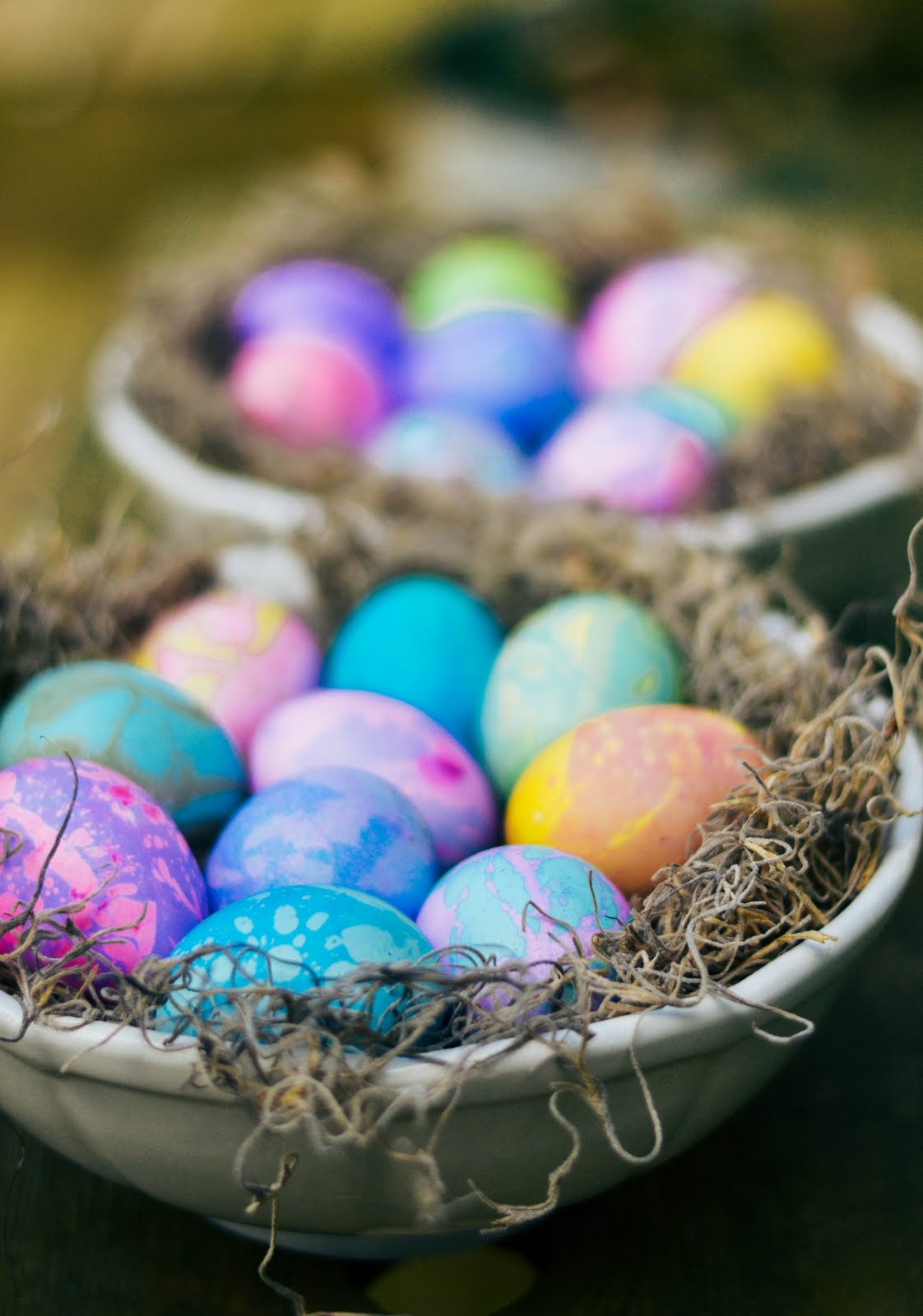 *We found that swirling the oil in different ways gave different patterns of bubbles and swirls on the eggs. So experiment, and have fun!