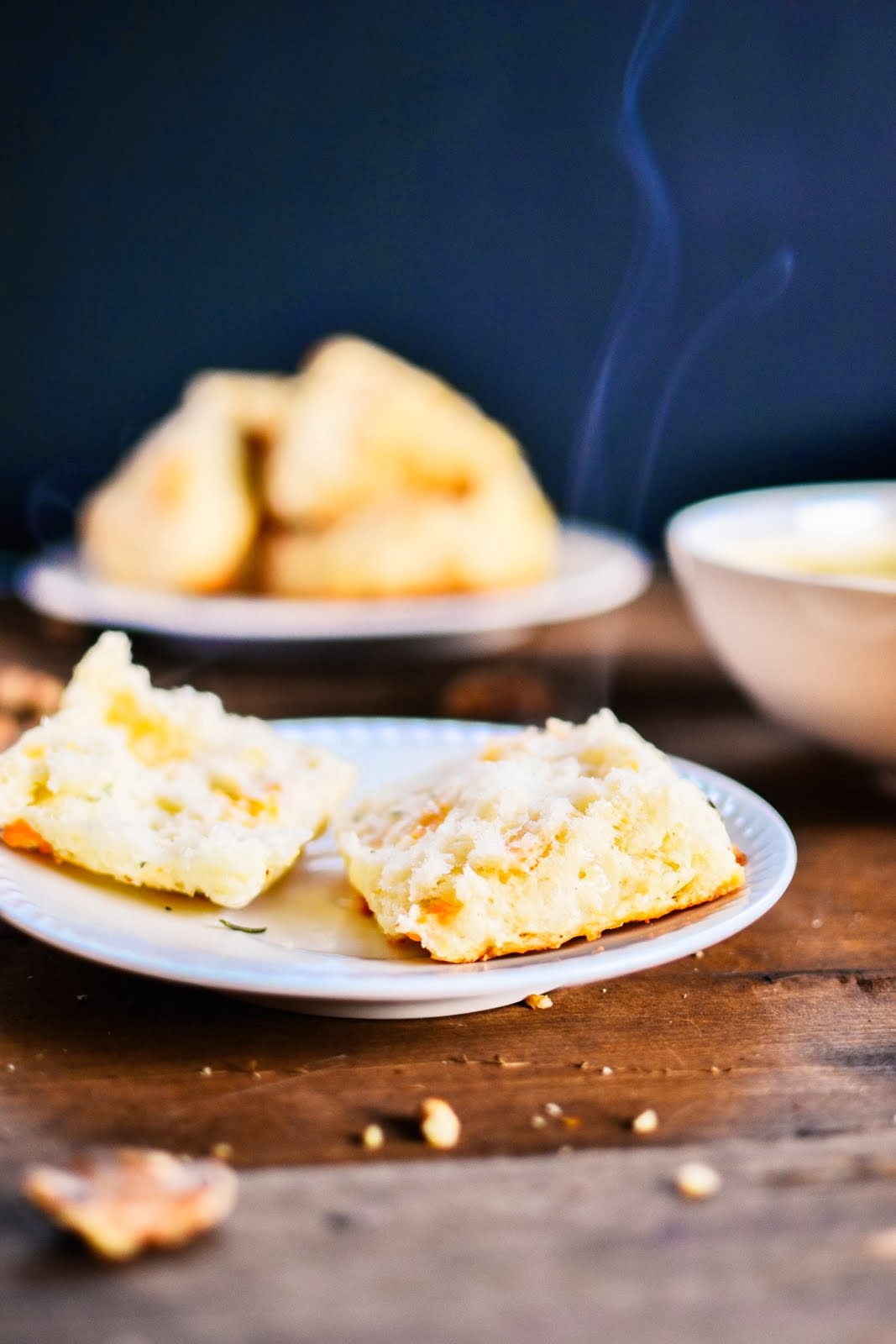 My momma helped me out, and we made it up as we went along. I knew that this soup wasn't quite complete without biscuits, so of course that needed to happen. We decided to spice up our regular biscuit recipe with a couple handfuls of cheddar, as well a few sprigs of freshly picked rosemary. There are so many Fall flavors going on in this meal, and they came together beautifully.